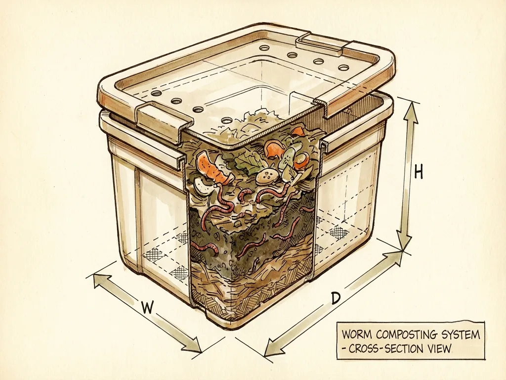 The key dimension is surface area, not depth. Worms work the top 6-8 inches, so there's no benefit to making the bin deeper than about 12-14 inches.